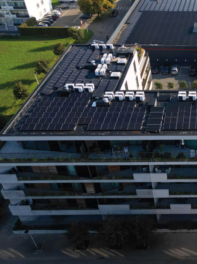 Voor het nieuwbouwproject met 38 appartementen stond Erens Technieken in voor de volledige technische installatie. Elk appartement werd uitgerust met een energie-efficiënte lucht-waterwarmtepomp en vloerverwarming voor een comfortabel en duurzaam binnenklimaat. De sanitaire toestellen van Vaillant zorgen voor betrouwbare warmwatervoorziening, terwijl een drukverhogingssysteem de nodige waterdruk garandeert voor zowel de sanitaire leidingen als de brandbestrijding. Bovendien werd regenwaterrecuperatie geïntegreerd voor alle wooneenheden – een milieuvriendelijke oplossing die bijdraagt aan duurzaam waterbeheer.